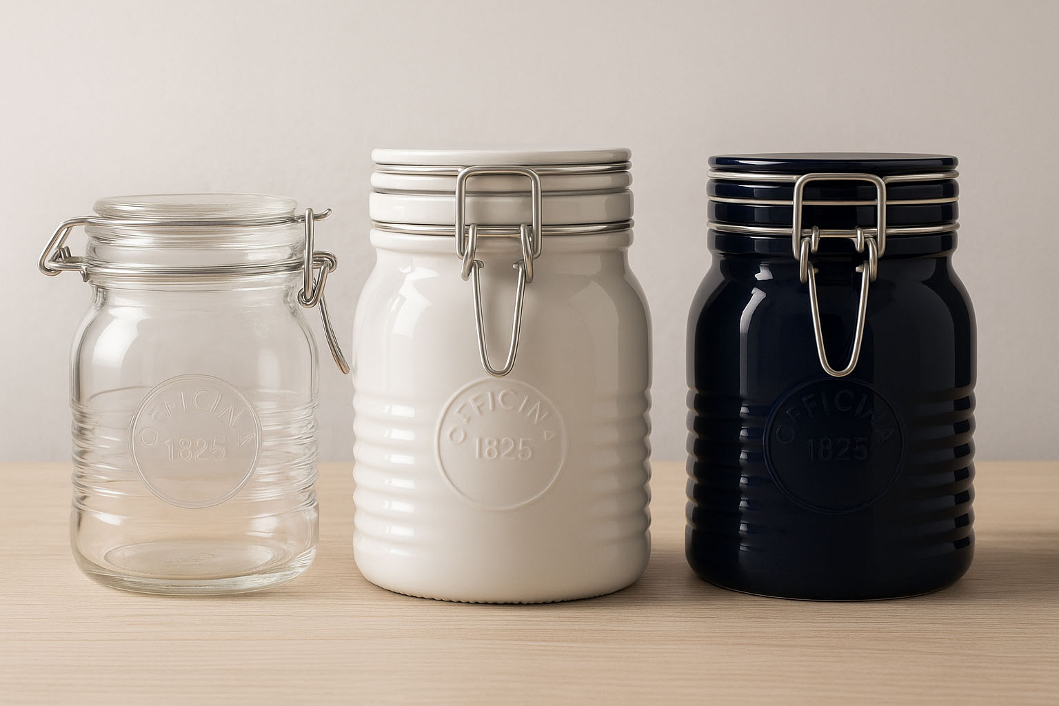 Itāļu ražotāja Bormioli Rocco sērija „Officina 1825“ apvieno augstas kvalitātes izstrādi ar nostalģisku šarmu. Raksturīgais dizains ar rievām stikla virsmā un iegravēto „1825“ logotipu padara katru glāzi par īstu uzmanības centru. Šie stilīgie stikla burkas ar metāla aizbāzni ir īpaši izstrādāti delikatešu ražotājiem, viesnīcām un prasīgiem privātajiem pildītājiem, kuri novērtē estētiku un kvalitāti. Pieejami zilā, sarkanā un baltā krāsā kā daļa no īpašās Color sērijas, „Officina 1825“ piedāvā ekskluzīvu iespēju glīti un droši uzglabāt smalkas delikateses.