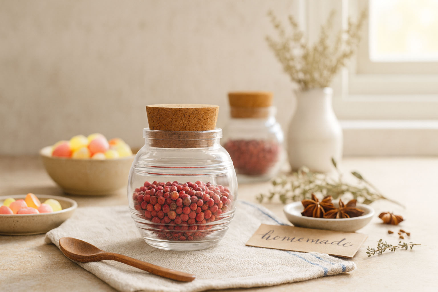 “Jule” sērija apvieno estētisku eleganci ar praktisku funkcionalitāti, piedāvājot stilīgu risinājumu garšvielu, konfekšu un citu gardumu uzglabāšanai. Bumbveida korķa trauks izceļas ar maigi noapaļotu formu un raksturīgo svītru reljefu, kas tam piešķir īpašu taustes sajūtu un nostalģisku šarmu. Apaļā pamatne nodrošina harmonisku izskatu, savukārt korķa atvere ļauj droši un dabīgi noslēgt trauku. Jule nav tikai praktisks uzglabāšanas trauks, bet arī dekoratīvs akcents, kas izceļas jebkurā virtuvē vai uz jebkura galda.