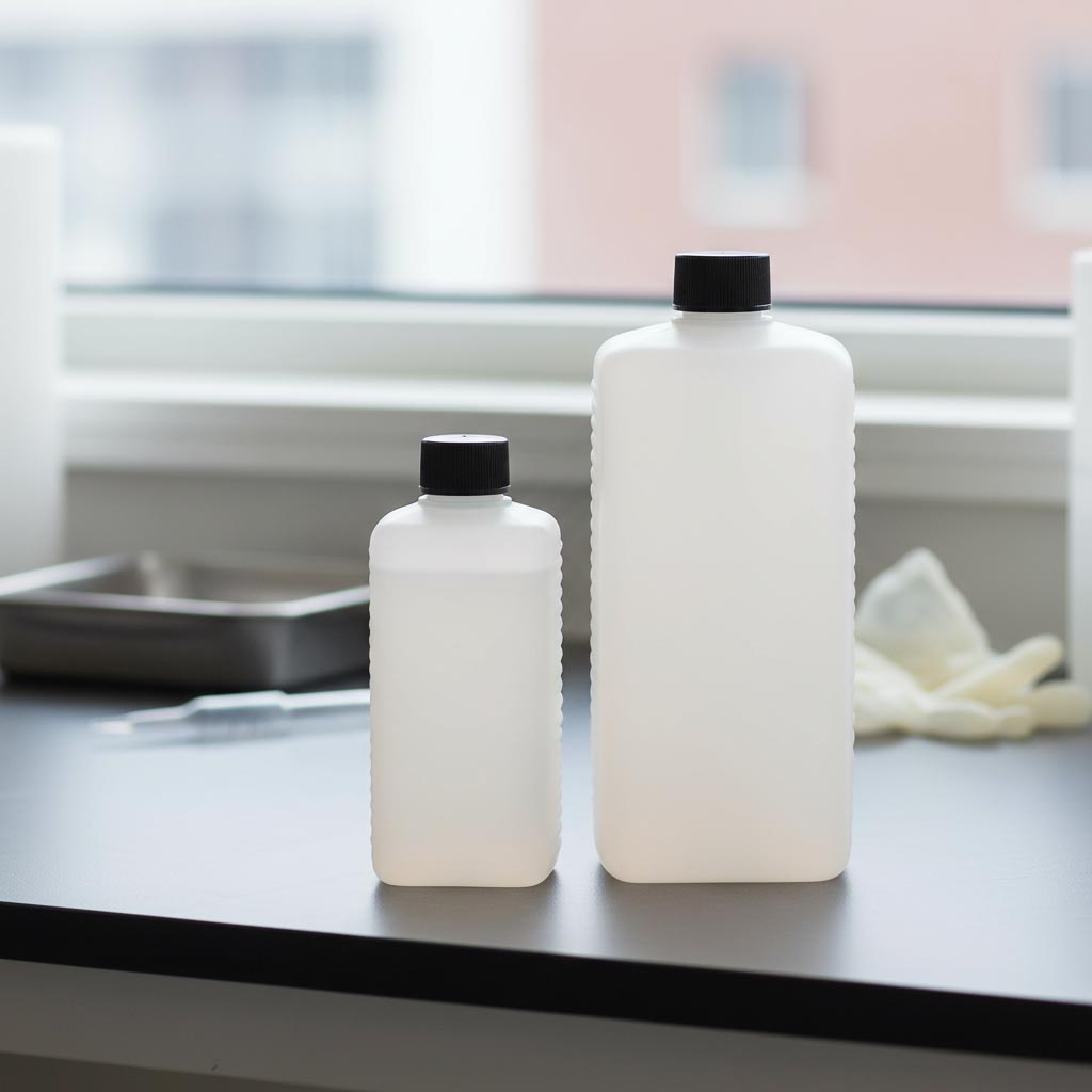 Flaschenland produktu sērija "PE-ceturkšņa pudele" ietver augstas kvalitātes, taisnstūra kanniņas no izturīga HDPE plastmasas praktiskā 500 ml izmērā. Tās galvenā iezīme ir stabilas materiāla kvalitātes un funkcionāla dizaina apvienojums, kas nodrošina drošu un daudzpusīgu uzglabāšanu. Kanniņas izgatavotas no dabīgas krāsas, aukstumizturīga HDPE (augstas blīvuma polietilēna), kas ir īpaši izturīgs un noturīgs pret temperatūras svārstībām. Ar standartizētu DIN 25 EPE atveri tās ir optimāli saderīgas ar ierastajiem aizvākiem un piederumiem. Taisnstūra forma nodrošina vietu taupošu uzglabāšanu un ērtu lietošanu. Turklāt trauku mazgājamās mašīnas izturīgie trauki garantē higiēnisku un laikietilpīgu tīrīšanu. Šie plastmasas trauki ir ideāli piemēroti uzglabāšanai.