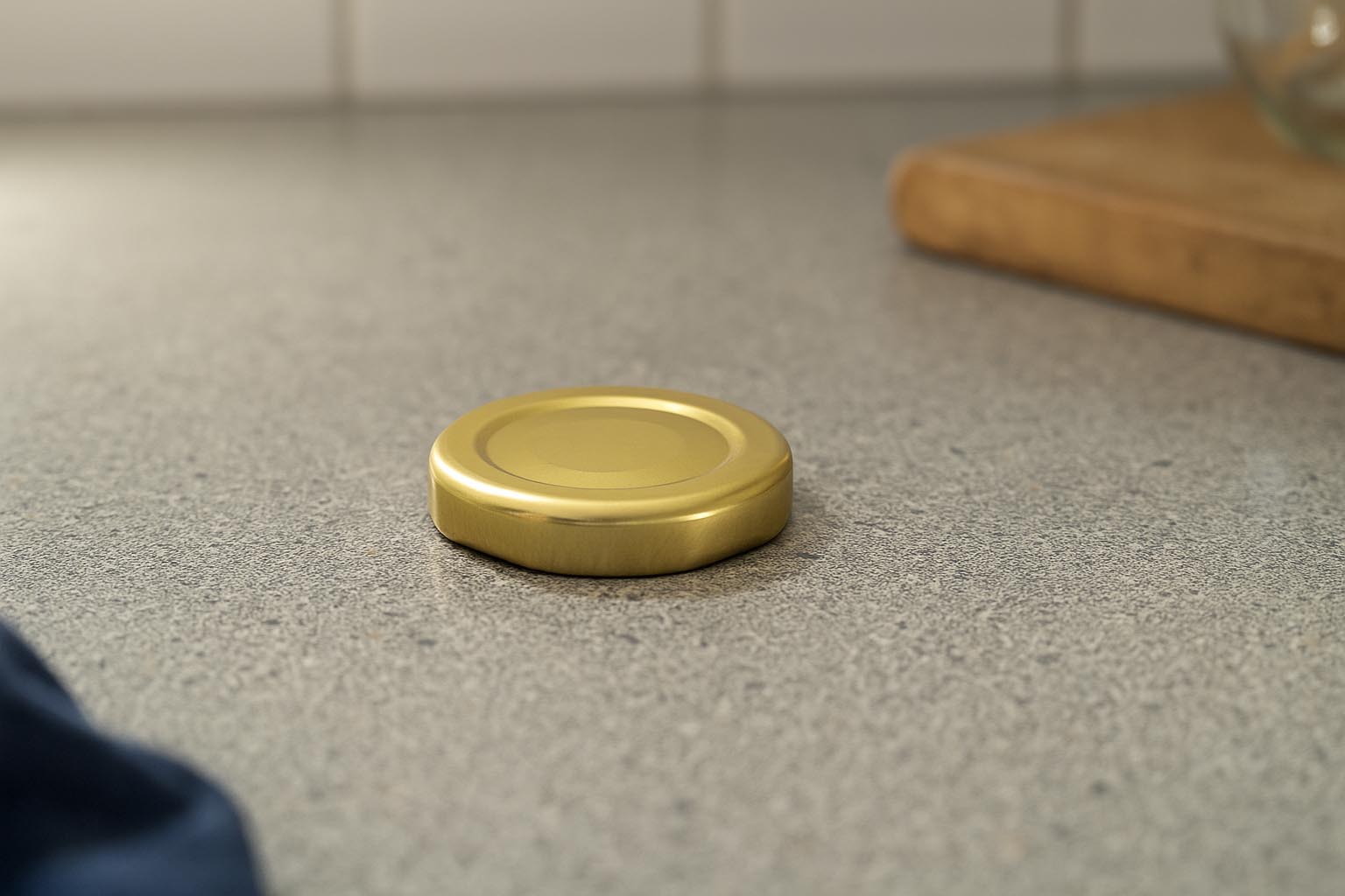 Glāzes un pudeles Twist-Off vāciņš, balts metāls, sterilizējams, zelta krāsā, atverei: TO 43